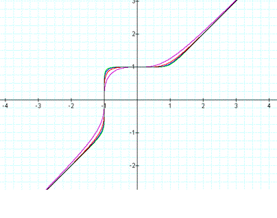 I look at the final graph of the combination of original graphs and the graphs of equations having even negative powers. It is similar to what I expect since new graph touches the original graph at x= -1. But it was not the symmetric of the graphs of the equations having odd powers.
