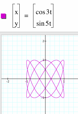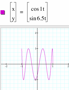 There is a conclusion that can be made looking at these graphs now: If a > 2 and b > 1, when b/a does not yield a whole number then we get a graph with a loops along the y-axis and b loops along the x-axis....