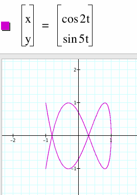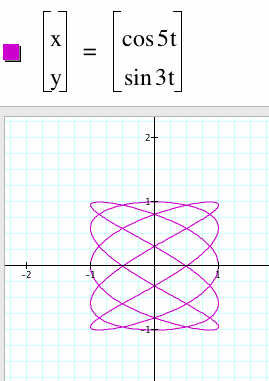 Note that in the first graph, when a = 3 and b= 1, we get 3 loops. This is similar to when a=1 and b= 3 but now the graph has rotated 90 degrees. Looking at the second graph we get something more interesting.. a is still less than b but we don't get b/a loops..or do we?? In fact what you will is 5 loops along the x-axis and 3 loops along the 3-axis. Yet, looking at the last graph we are back to the loops are equal to b/a..we will have to do more investigations.