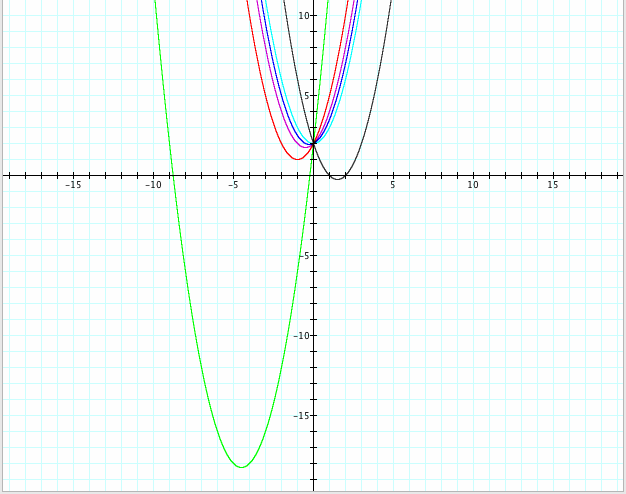 Before I make my conclusions I want to look at another set of graphs all on the same coordinate plane with different values of b and c this time.