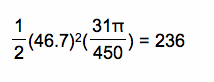 So, the area of one gray sector with radius 46.7 is: