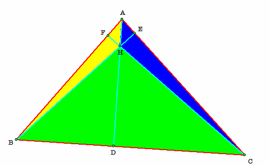 Given triangle ABC. Construct the Orthocenter H. Let point D,E, and F be the feet of the perpendiculars from A, B, and C respectfully.