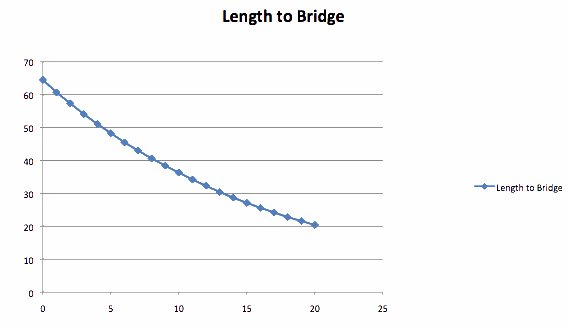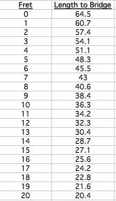 So, if we let the fret number represent our x-value, and the length to represent the y-value, we can come up with a function to represent this data. (Let's choose the point (0, 64.5).)