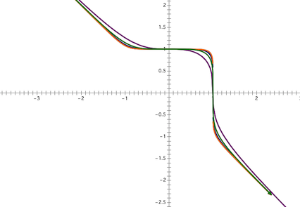At first glance, we can see that each value for a positive x corresponds to being the negative of its corresponding negative x value. This means we have symmetry along y=x, which is one of the properties of odd functions. Also, the absolute value of y increases as x decreases from -1 or increases from 1. This explains the tails in these domains. However, how do we explain why the absolute value of y increases less rapidly as n increases? The reason is we are computing the following value when trying to find y: