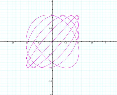 What if we have a parametric function such that x = cos(at) and y = sin(bt)? How will the function behave if we let the values of t range from 0 to 2pi? Unfortunately, this is hard to generalize because it really depends on our values of a and b. Let’s say that we let b be a constant value, say 5, and we slowly increase a starting at 0: