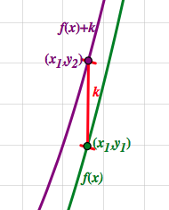 Now say we are adding a constant, k (which we will say is positive), to our function so that, once added, we have y=f(x)+k. If we plug in our initial point into this new function, we get y1=f(x1)+k. If we plug in our initial point, we get a different y-value. We get the equation y2=f(x1)+k, or y2=y1+k if we substitute.