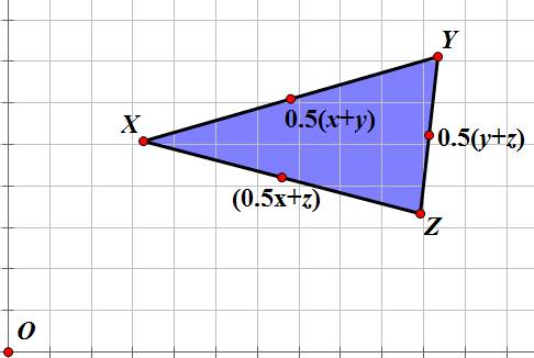 triangle as a vector. Hence, we can label each side as such, where x is the vector extending from O to X, y is the vector extending from O to Y,