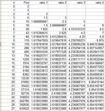 Here, I started with 2 and 2, and the ratios are almost identical to the ratios for the Fibonacci Sequence.