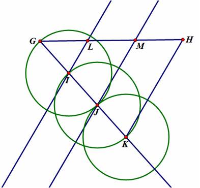 5. The parallel lines will trisect the line segment GH at L and M