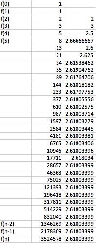 Let's explore with the ratio of two consecutive numbers in the Fibonacci sequence.