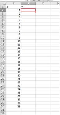 I first input x in cell A1 and y in cell B2.