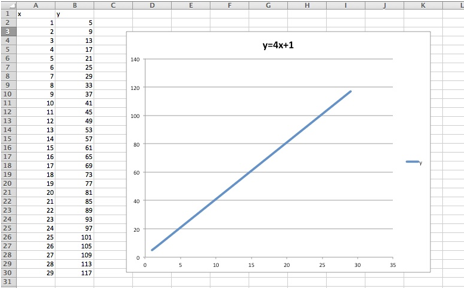 Note that rather than typing Ò4x+1Ó in the f(x), A2 must be used for x as shown below.