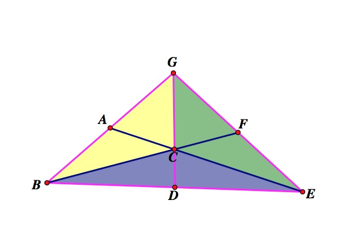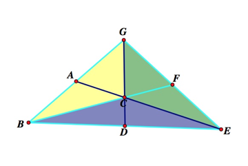 ΔECD have the same area, ΔABC and ΔACG have the same area, and