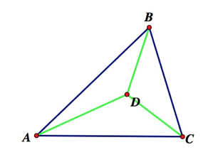 point D is inside or outside of triangle ABC. No matter where point D is