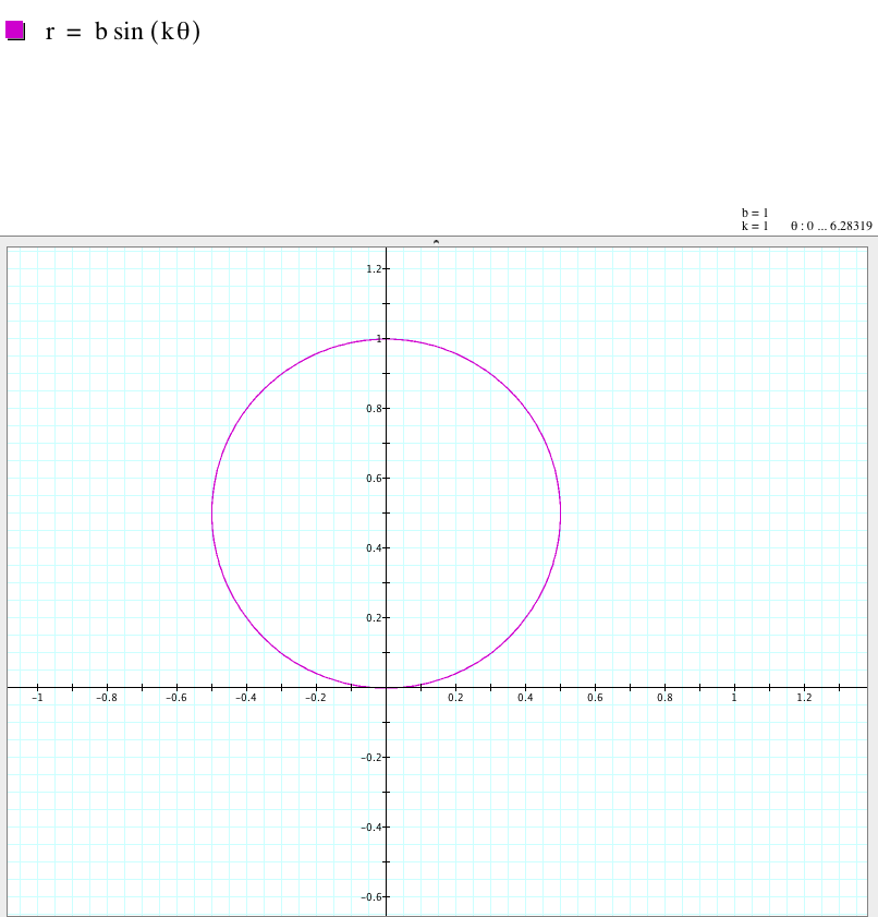 Here, a slight change to the original equation is presented. When we simply have r = b cos (kθ), a circle is formed from the origin.