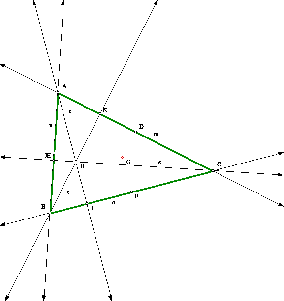 * Construct a perpendicular line on n through point C. Name the perpendicular line s and label the point where n and s cross as point J.