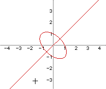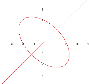 simple case would be y = x. But, rather than graphing the ellipse and then
