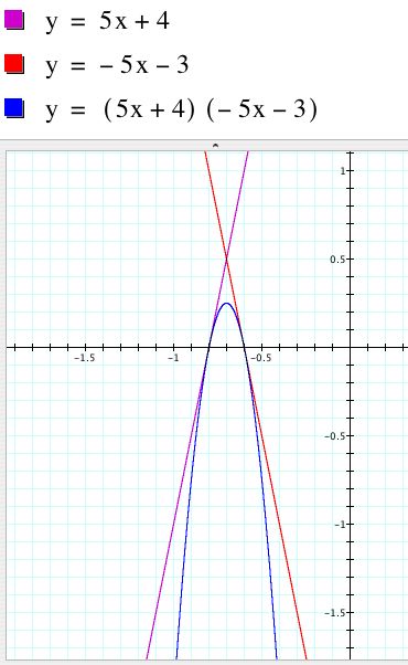 So, the second cotangent line is represented by the function g(x) = -5x - 3. A graph of f, g, and fg is below.