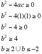 Verification that real solutions of are present when the absolute value of b is greater than or equal to 2. If a=1 and c=1, then