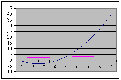 1 -1 2 2 -3 2.236067977 3 -3 2.449489743 4 -1 2.645751311 5 3 2.828427125 6 9 3 7 17 3.16227766 8 27 3.31662479 9 39 3.464101615