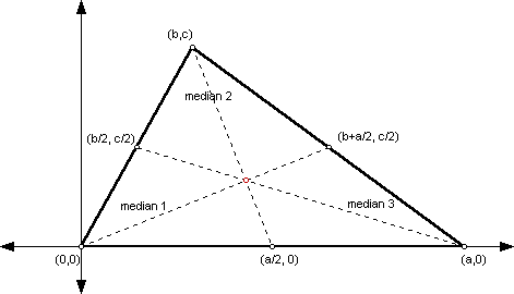 So we will assume without loss of generality that one of the vertices of the triangle are located at the origin of the Cartesian plane. One of the vertices will be located on the x-axis at the point (a, 0) and the third vertex will be located in the first quadrant at the point (b, c).
