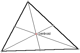 The median of a triangle is the segment that connects one of the vertices of a triangle with the opposite side. The triangle below shows all three medians of a triangle and the centroid (in red).