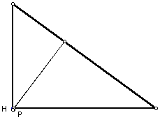 Now let us examine a right triangle and what happens when the pedal point, P, is located at the circumcenter.