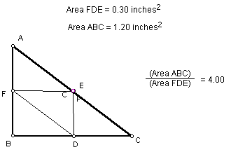 Again the ratio is four and the pedal triangle is one fourth the given right triangle.