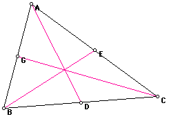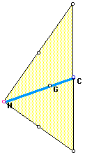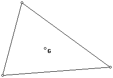 The CENTROID, G, of a triangle is the common point of intersection of the three medians of a triangle. Recall, that a median of a triangle is the segment from a vertex to the midpoint of the opposite side. It is important to note the centroid is actually the center of gravity of the triangle. This means that if you make a "real" triangle out of cardboard, you can balance the triangle at this point.