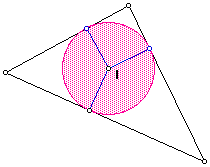 6. Incircle - circle with center, incenter, I, and feet of perpendicular lines from the incenter to the sides of the triangle are points on the circle.