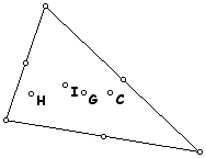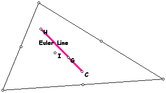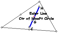 18. Triangle Centers with Euler Line - The Centers of a triangle, H(orthocenter), G(centroid), and C(circumcenter) always lie in a line called the Euler Line.