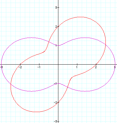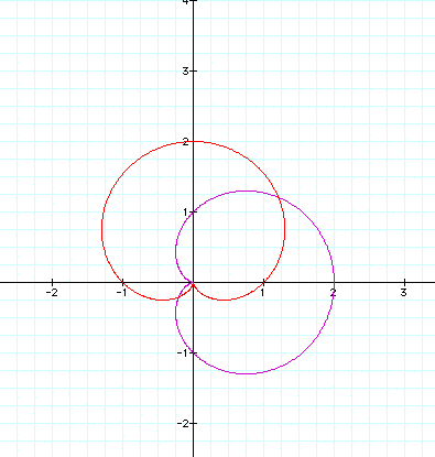 Again these graphs are the same but this time the sin graph only rotated 45 degrees. We expect the graphs of sin and cosine to be the same when a>b, a=2, b=1 and k=2 but again the sin graph is rotated. The following is the graphs of sin and cosine with the stated conditions.