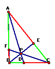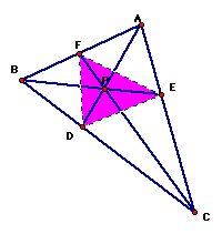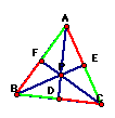 Conjecture: the ratio of (AF)(BD)(EC)/(FB)(DC)(EA) = 1 or ((AF)/(FB)) * ((BD)/(DC)) * ((EC)/(EA)) = 1