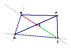 If use lines instead of segments to construct the triangle ABC and locate point P outside of the triangle, then we have a construction that is a quadrangle. Click here for a GSP sketch of the triangle ABC and the point P that can be moved to outside of the triangle.