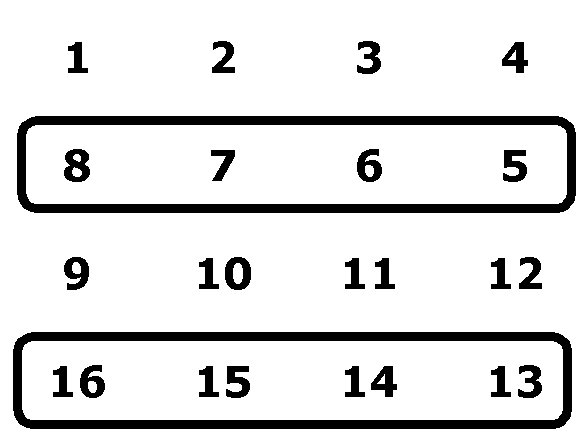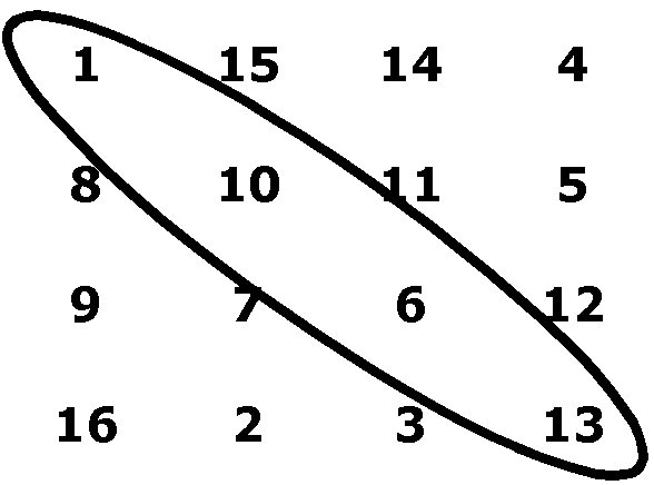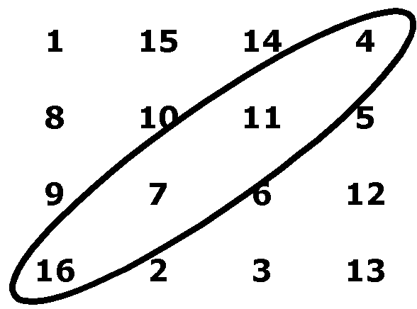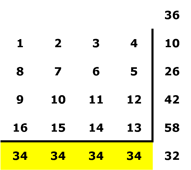 The sum of all the values 1 through 16 is 136. Dividing this result