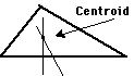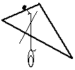 Step #1 Stick a pin anywhere through the interior of the cardboard triangle. Pin the triangle loosely to a bulletin board. The triangle should be able to hang freely by its own weight. Step #2 Tie a paper clip to a string and loop the string over the pin so that the weighted string hangs over the interior of the triangle. This string with a paper clip weight is a plumb line. Draw a line on the cardboard triangle, showing the path of the string. Step #3 Stick the pin through another point in the interior of the triangle and hang the plumb line. Draw another line on the cardboard triangle, showing the new path of the string. Step #4 The center of mass of the cardboard triangle is where the two lines cross. Check to see if your cardboard triangle balances on that point. While the geometric construction and patty paper construction methods of finding the center of mass worked only for triangles, this physical procedure works for any cardboard polygon. Can you discover a geometric construction or patty paper construction method that locates the center of mass of a cardboard quadrilateral? (You could then use the plumb line method to check to see if your construction method works.) "Discovering Geometry: An Inductive Approach" Serra, P. 165 | |||