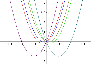 In the following picture a = 1, c = 0, and b = -3, -1, -1/2, 1/2, 1, and