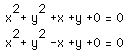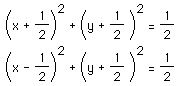 The centers are at (-1/2, -1/2) and (1/2,-1/2) and radius (sqrt(2))/2.