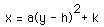 where the vertex of the parabola is (h,k) and the axis of symetry is