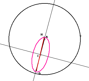 A more geometric definition of the ellipse is the set of all points in the plane, the sum of whose distances from two fixed points is constant. Each fixed point is called a focus. The following is an ellipse created using GSP.