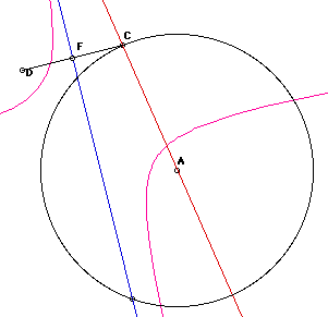 As D is moved around on the outside of the circle, you will get a different hyberbola. Click here to view the GSP file that demonstrates this. The following is an example of such a hyberbola.