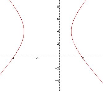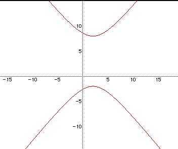 The above hyberbola was constructed by moving the point in the ellipse construction above outside the circle. The following is the picture with the appropriate labels.