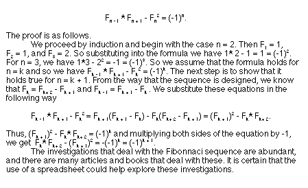 Also, the spreadsheet enabled us to look at the formula F(n -