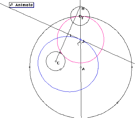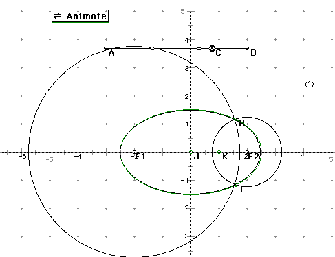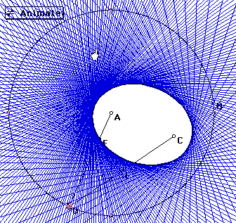 I did this several times moving C around to several positions closer to the center and further away from the center. The closer C got to the center, the more circular the ellipse. The further away C got from the center, the more elongated the ellipse. When C was exactly on the center, the line enclosed a concentric circle. When C was on the circle, the ellipse degenerated to a line.